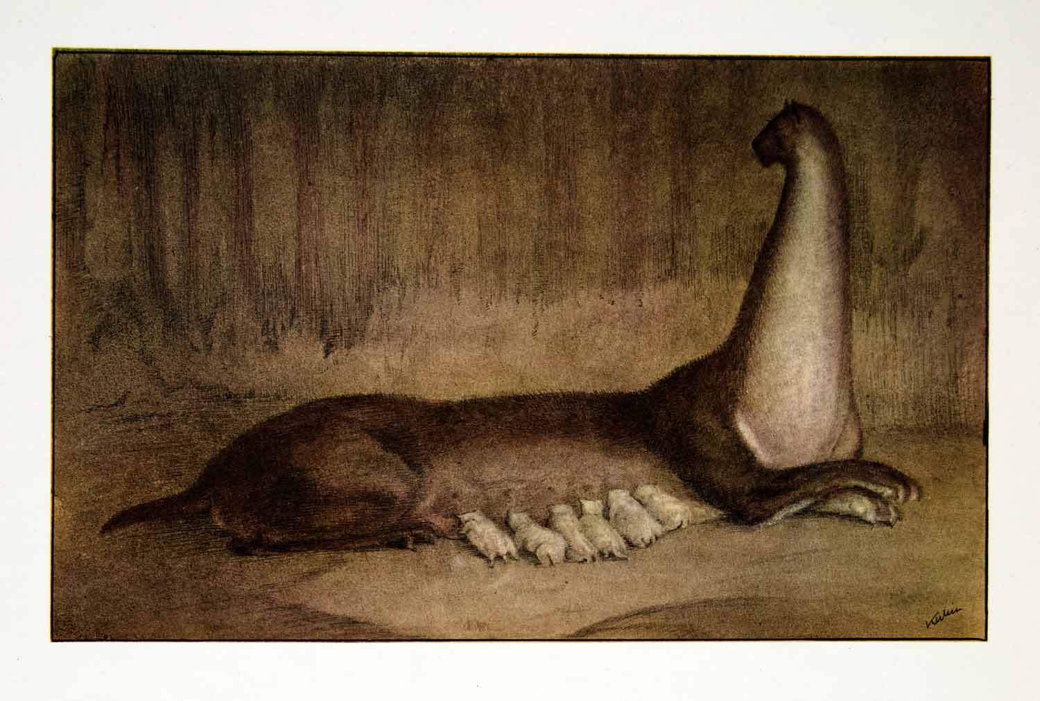 Keywords specific to this image: Breast-Feeding, Contemporary Art, Surrealism, Creature, Feline, Kittens, Baby Animals