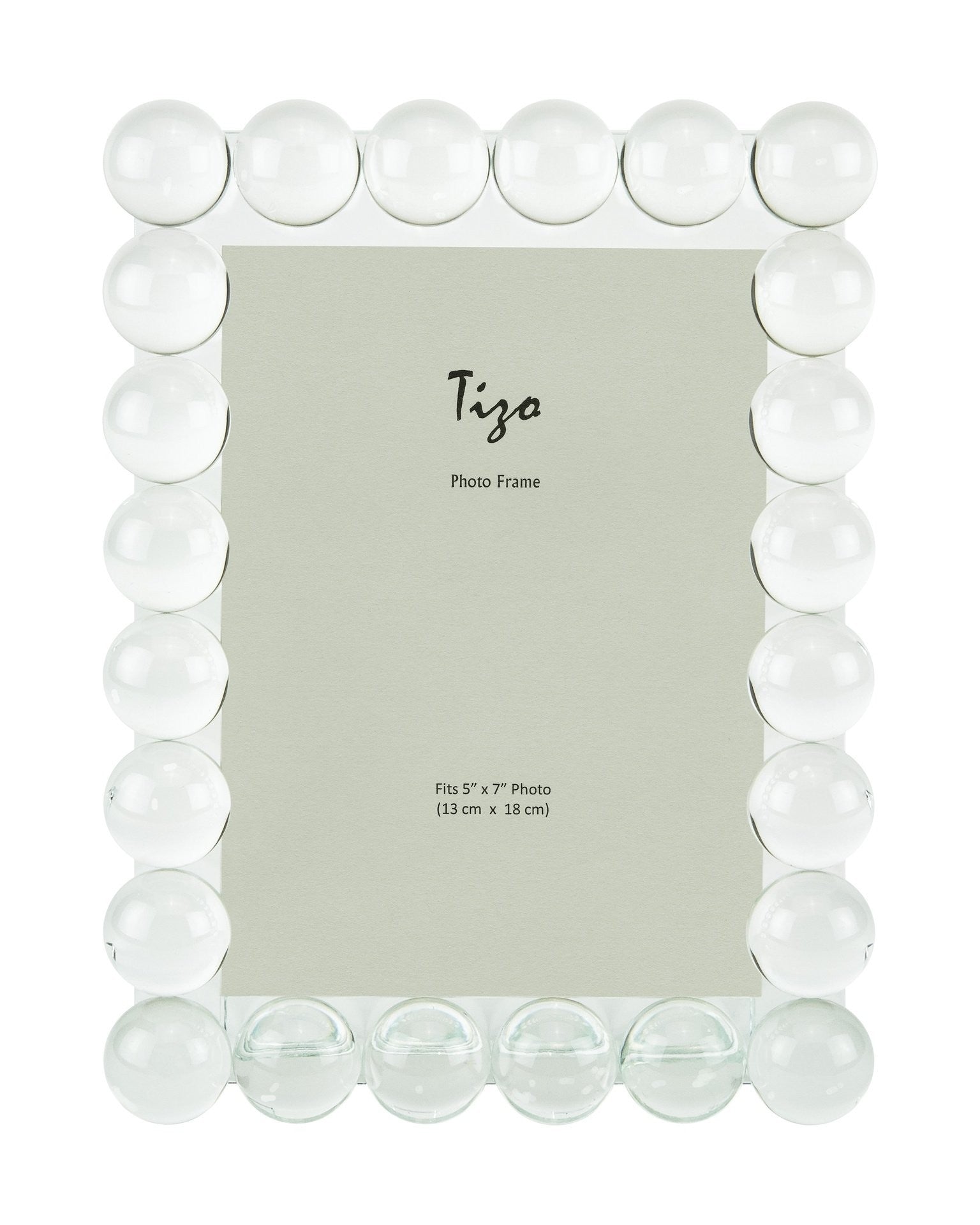 Elegant and modern, a single row of clear crystal bubbles adorn this frame with a screw-on easel back. It is both decorative and functional, perfect for the home or office, and stands vertically or horizontally.